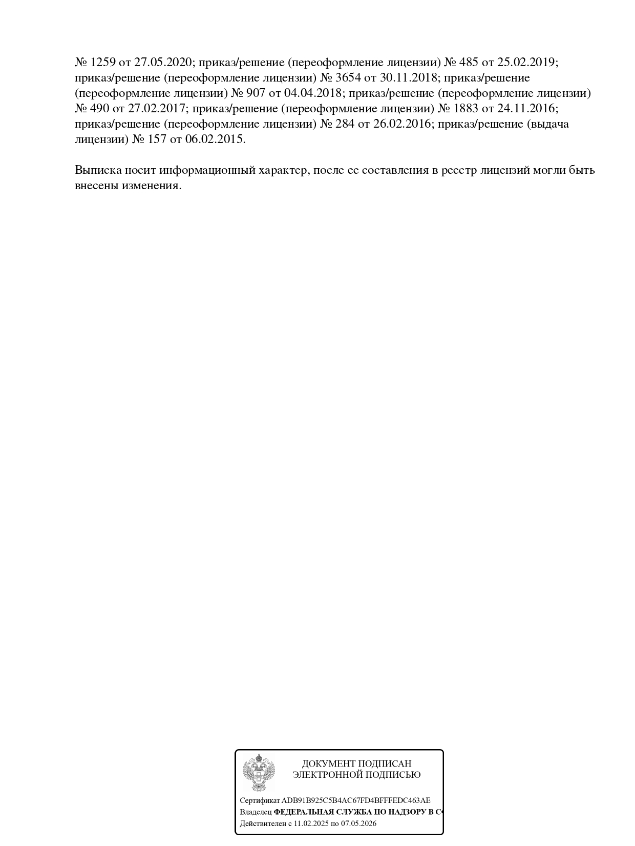 . Медицинская лицензия: